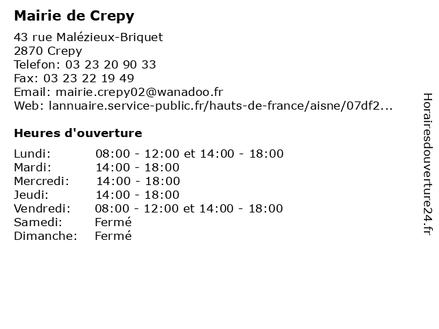 Termes de recherche pour Mairie de Crepy:de, administration, mairie, service, crepy, public |