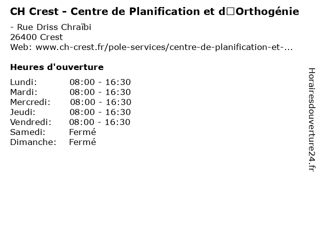 | Mercredi | 08:00-16:30 |