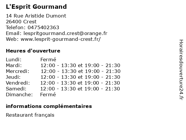 Termes de recherche pour L'Esprit Gourmand:restauration, restaurant, café, bar, bistrot, brasserie, gourmand, bistro, l'esprit |