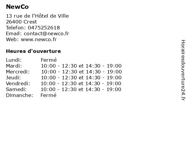 | Mercredi | 10:00-12:30 et 14:30-19:00 |