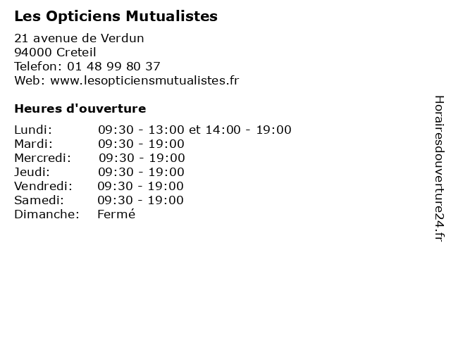 | Lundi | 09:30-13:00 et 14:00-19:00 |