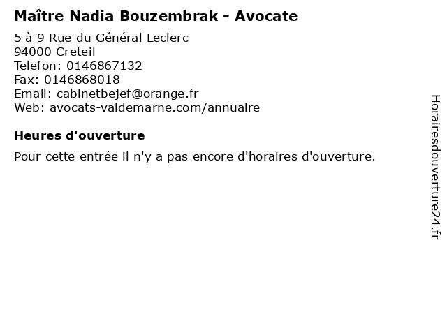 | Appeler Maître Nadia Bouzembrak - Avocate | |