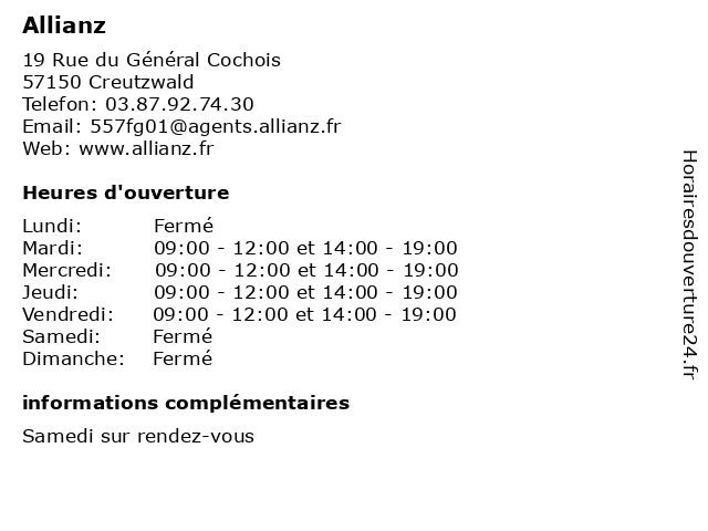 1 Allianz (Distance: 5,85 km) 18 Rue de Saint-Avold, 57490 L'Hopital allianz, assurance prêt, assurances, services 3 Allianz (Distance: 11,05 km) 35 Boulevard de Lorraine, 57500 Saint-Avold allianz, assurance prêt, assurances, services 6 |