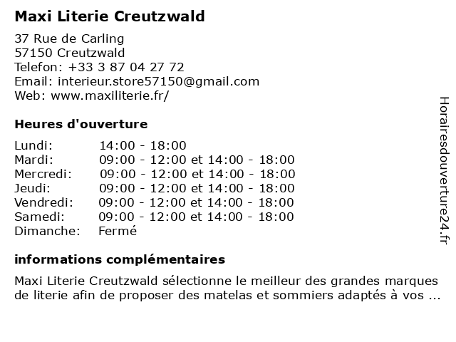 | Mardi | 09:00-12:00 et 14:00-18:00 |