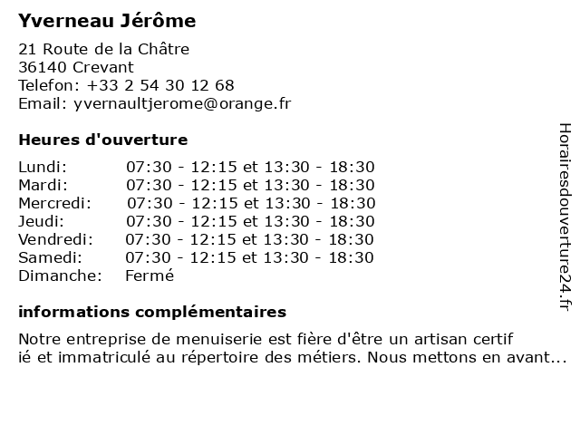 Mercredi | 07:30-12:15 et 13:30-18:30 |