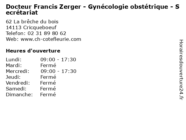 1 Dr Francis Herbiere - Rhumatologue - secrétariat (Distance: 0,00 km) 8 La Brèche du Bois, 14113 Cricqueboeuf consultation, docteur, dr, francis, herbiere, med, médecin, médecine, rhumatologue, secrétariat, traitement 2 Centre Hospitalier de la Côte Fleurie - Gynécologie obstétrique - Secrétariat (Distance: 0,00 km) 62 La brêche du bois, 14113 Cricqueboeuf centre, consultation, côte, de, docteur, fleurie, gynécologie, hospitalier, la, med, médecin, médecine, obstétrique, secrétariat, traitement 3 Dr Mathieu Fauck - Gynécologue médical et obstétrique - secrétariat (Distance: 5,49 km) 28 Avenue F de Kergorlay, 14800 Deauville consultation, docteur, dr, et, fauck, gynécologue, mathieu, med, médecin, médecine, médical, obstétrique, secrétariat, traitement 4 Monsieur Francis Demarest (Distance: 5,87 km) Residence Du Golf, 14800 Deauville demarest, francis, restaurants 5 Dr Sophie Degre - Gynécologue médical et obstétrique (Distance: 12,92 km) 69 rue d'Ingouville, 76600 Le Havre consultation, degre, docteur, dr, et, gynécologue, med, médecin, médecine, médical, obstétrique, sophie, traitement 6 Dr Francis Le Sire - Médecin généraliste (Distance: 13,00 km) 55 bis rue Gustave Flaubert, 76600 Le Havre consultation, docteur, dr, francis, généraliste, le, med, médecin, médecine, sire, traitement |