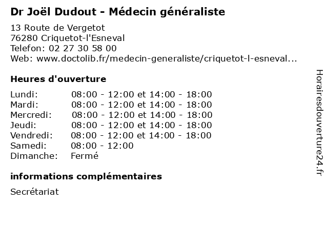 | Lundi | 08:00-12:00 et 14:00-18:00 |