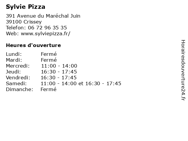 | Lundi | Fermé |
