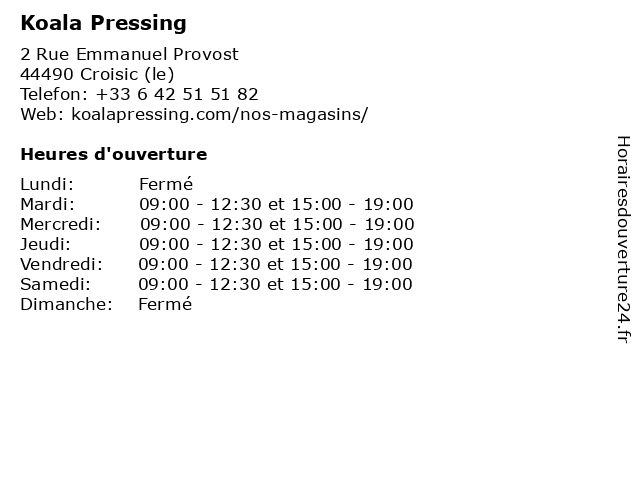 | Lundi | Fermé |