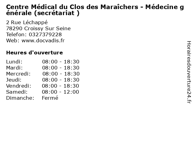 Termes de recherche pour Centre Médical du Clos des Maraîchers - Médecine générale (secrétariat ):du, des, centre, maraichers, générale, medecine, santé, medical, clos, secretariat, docteur, consultation |