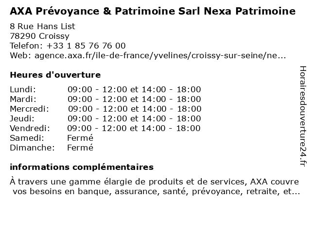 | Lundi | 09:00-12:00 et 14:00-18:00 |