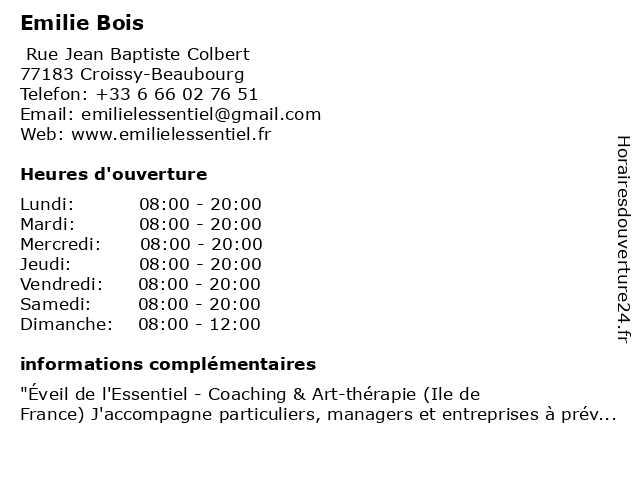 | Mercredi | 08:00-20:00 |