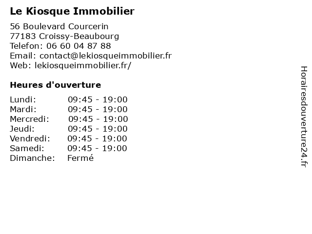 | Lundi | 09:45-19:00 |