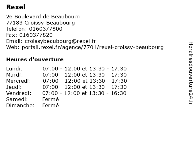 1 Rexel (Distance: 8,16 km) 91 Rue Marcel Paul, 94500 Champigny Sur Marne bricolage, loisirs, rexel, services 2 Rexel (Distance: 8,44 km) 35 Rue Francois de Tessan, 77330 Ozoir la Ferriere bricolage, loisirs, rexel, services 3 Rexel (Distance: 11,56 km) 174 Avenue Marechal De Lattre, 94120 Fontenay Sous Bois bricolage, loisirs, rexel, services 4 Rexel (Distance: 13,19 km) - ZI Le poirier Penche, 77170 Sevron bricolage, loisirs, outillage, rexel, électrique 5 Rexel (Distance: 14,52 km) 115-117 avenue de la République, 94700 Maisons Alfort bricolage, magasin, outils, portails, rexel, services 6 Rexel (Distance: 16,11 km) 70 Rue de Paris, 93130 Noisy le Sec bricolage, magasin, outils, portails, rexel, services |