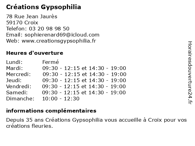 | Mercredi | 09:30-12:15 et 14:30-19:00 |