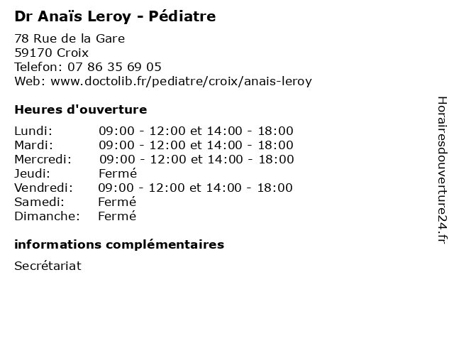 | Mercredi | 09:00-12:00 et 14:00-18:00 |