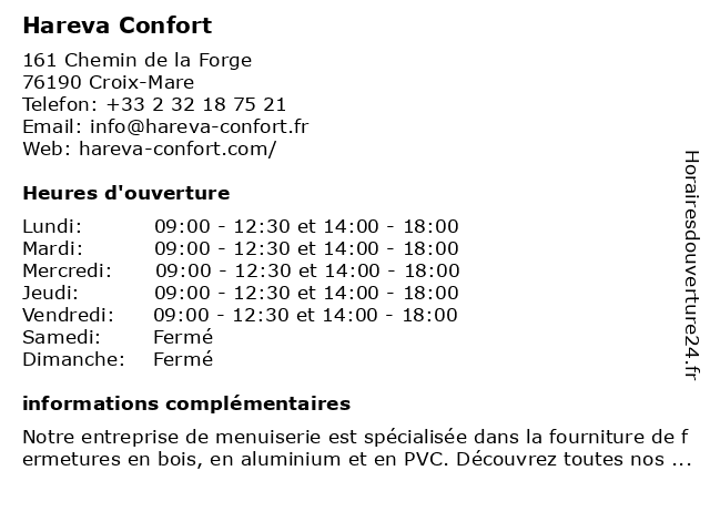 | Lundi | 09:00-12:30 et 14:00-18:00 |