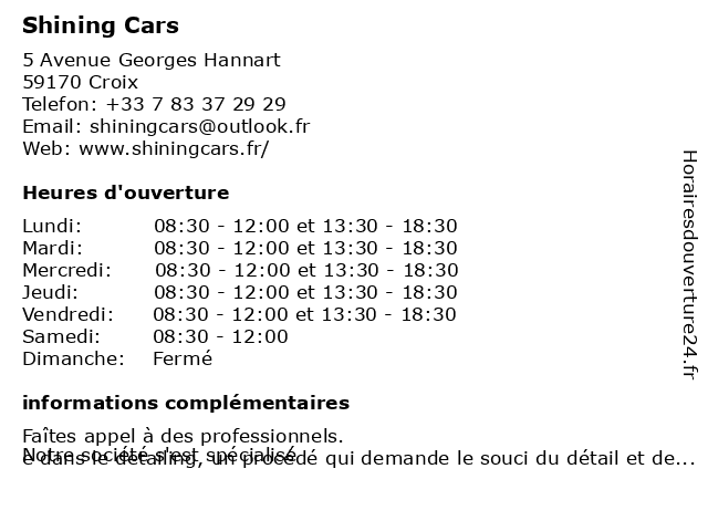 | Lundi | 08:30-12:00 et 13:30-18:30 |