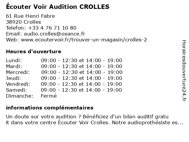 | Mercredi | 09:00-12:30 et 14:00-19:00 |