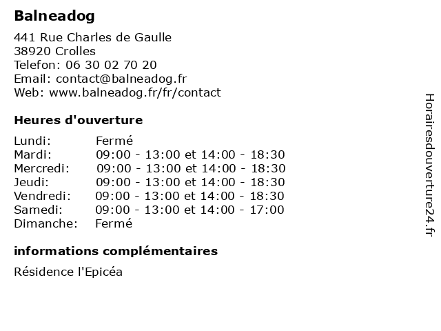 | Mercredi | 09:00-13:00 et 14:00-18:30 |