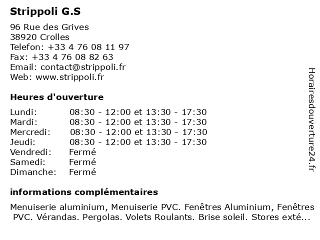 Lundi | 08:30-12:00 et 13:30-17:30 |
