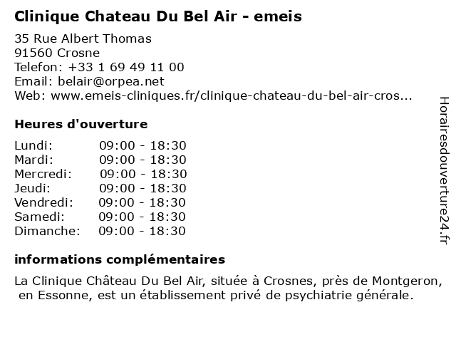 Termes de recherche pour Clinique Chateau Du Bel Air - emeis:du, air, bel, chateau, clinique, médecin, psychiatrie, psychologue, spécialisée, psychiatre, emeis, santé mentale, hospitalisation complète, projet de soins individualisé, psychiatrie générale adulte, consultations externes, unité secteur |