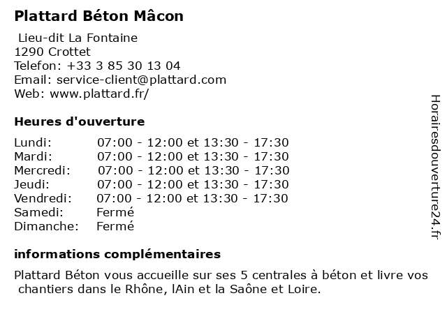 | Lundi | 07:00-12:00 et 13:30-17:30 |