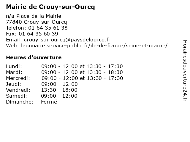 | Mardi | 09:00-12:00 et 13:30-18:30 |