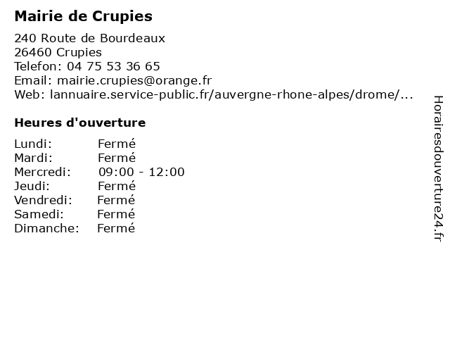 Termes de recherche pour Mairie de Crupies:de, mairie, central, commune, crupies, gouvernement, nra |
