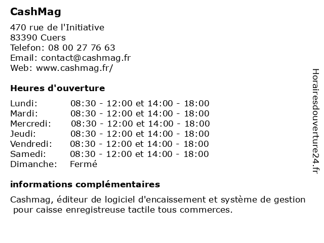 | Samedi | 08:30-12:00 et 14:00-18:00 |