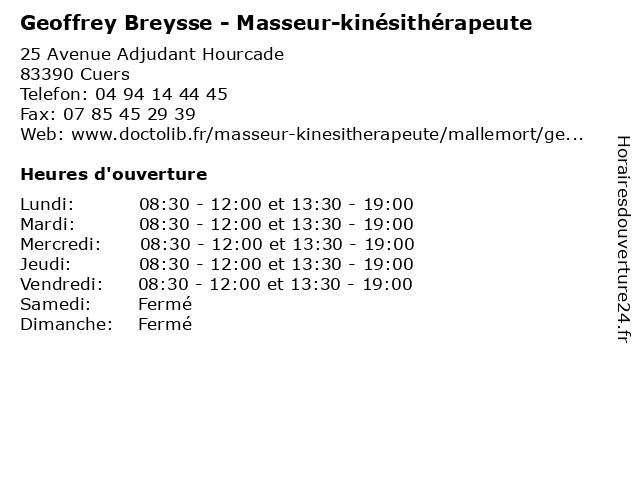 | Mardi | 08:30-12:00 et 13:30-19:00 |