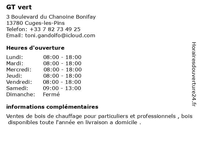 1 GT Drive (Distance: 8,36 km) 554 Avenue de Berlin, 83870 Signes circuits, drive, entreprise, gt, pilotage, société, stage 3 Ecole maternelle publique Pin Vert (Distance: 10,77 km) - Route de Roquevaire, 13400 Aubagne cio, collège, cours, ecole, enseignement, lycée, maternelle, nationale, orientation, pin, primaire, privé, privée, public, publique, vert, école, éducation, élémentaire 4 Ecole élémentaire publique Pin Vert (Distance: 10,77 km) - Route de Roquevaire, 13400 Aubagne cio, collège, cours, ecole, enseignement, lycée, maternelle, nationale, orientation, pin, primaire, privé, privée, public, publique, vert, école, éducation, élémentaire 5 Citron Vert (Distance: 10,80 km) 51 Rue de la République, 13400 Aubagne beauté, citron, cosmétique, institut, maquillage, parfum, soins, vert 6 Pharmacie du Pin Vert (Distance: 10,96 km) 33 Avenue Roger Salengro, 13400 Aubagne du, herboristerie, médicaments, paramédical, parapharmacie, pharmacie, pharmacien, pin, santé, traitements, vert |