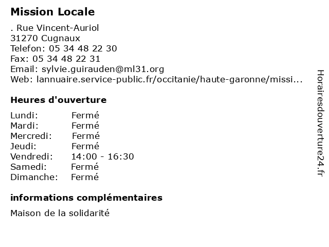 1 Mission Locale (Distance: 2,89 km) . Place de la Libération, 31600 Seysses insertion, jeunes, locale, mission, professionnelle, seysses 2 Mission Locale (Distance: 8,11 km) 12 place André-Abbal, 31100 Toulouse insertion, jeunes, locale, mission, professionnelle, toulouse 3 Mission Locale (Distance: 9,40 km) 35 Rue du Lot, 31100 Toulouse insertion, jeunes, locale, mission, professionnelle, toulouse 4 Mission Locale (Distance: 10,15 km) 6 Avenue Édouard-Serres, 31770 Colomiers colomiers, insertion, jeunes, locale, mission, professionnelle 5 Mission Locale (Distance: 10,99 km) 1 Place Commerciale, 31400 Toulouse insertion, jeunes, locale, mission, professionnelle, toulouse 6 Mission Locale (Distance: 13,94 km) 61 Rue Pierre-Cazaneuve, 31200 Toulouse insertion, jeunes, locale, mission, professionnelle, toulouse |