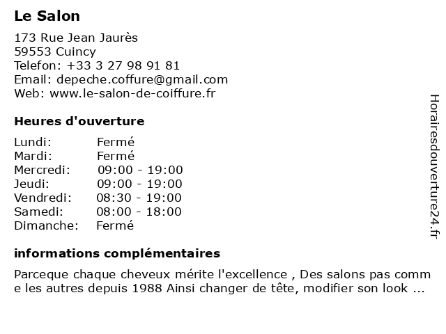 | Lundi | Fermé |