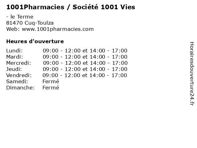 | Mardi | 09:00-12:00 et 14:00-17:00 |