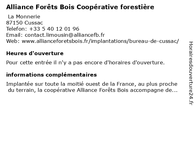 | Appeler Alliance Forêts Bois Coopérative forestière | |