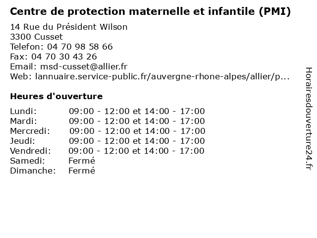 | Mardi | 09:00-12:00 et 14:00-17:00 |