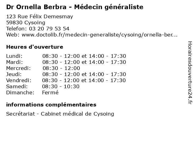| Lundi | 08:30-12:00 et 14:00-17:30 |