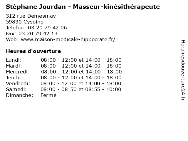 | Lundi | 08:00-12:00 et 14:00-18:00 |