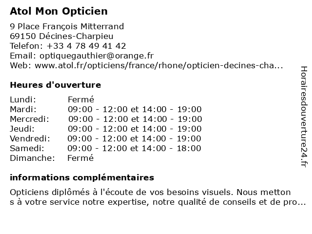 | Mercredi | 09:00-12:00 et 14:00-19:00 |