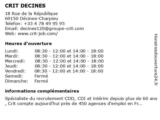 Termes de recherche pour CRIT DECINES:decines, crit |