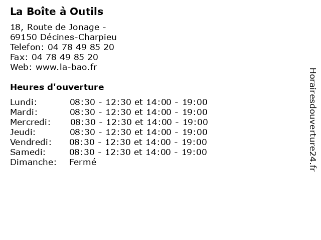 | Samedi | 08:30-12:30 et 14:00-19:00 |