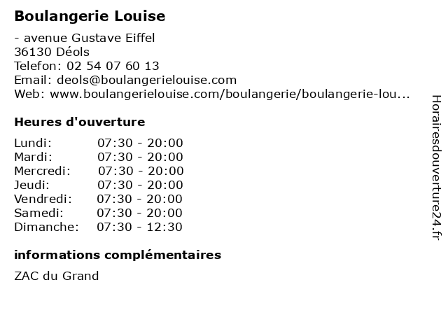 | Samedi | 07:30-20:00 |