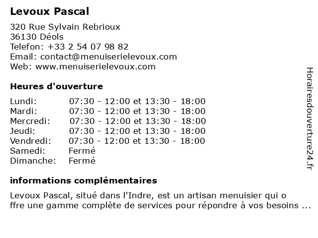 | Vendredi | 07:30-12:00 et 13:30-18:00 |