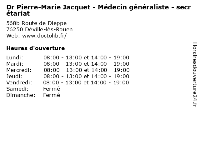| Lundi | 08:00-13:00 et 14:00-19:00 |