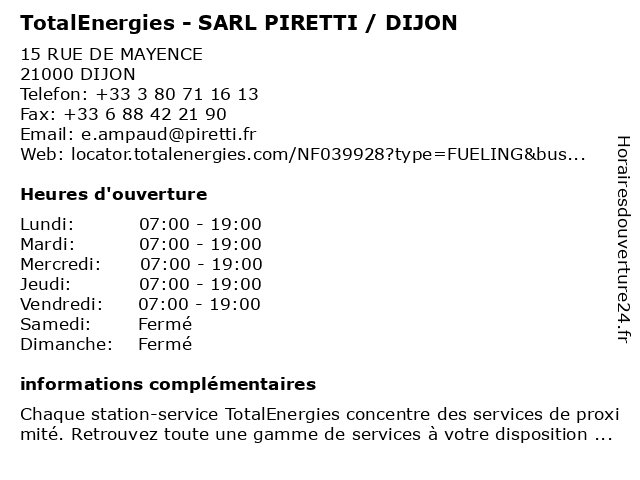 Termes de recherche pour TotalEnergies - SARL PIRETTI / DIJON:dijon, sarl, total, gas station, station service, tankstelle, piretti, totalenergies |