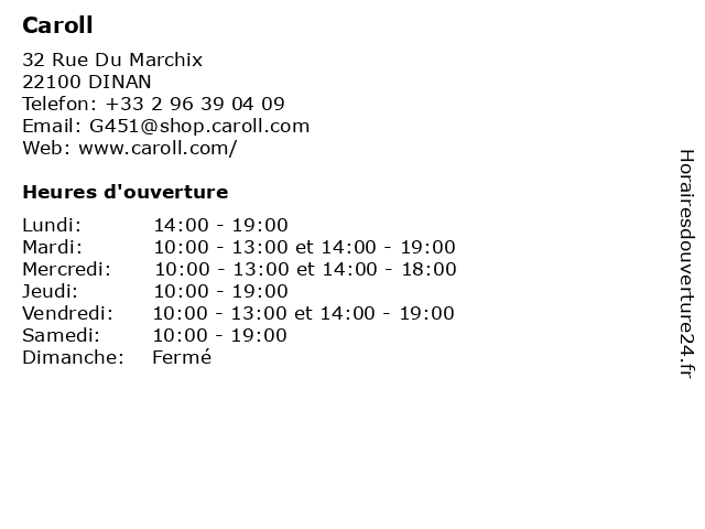 | Mardi | 10:00-13:00 et 14:00-19:00 |