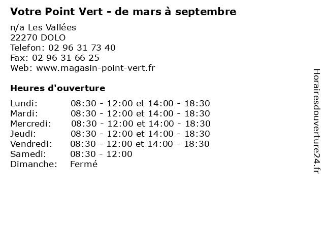 | Lundi | 08:30-12:00 et 14:00-18:30 |