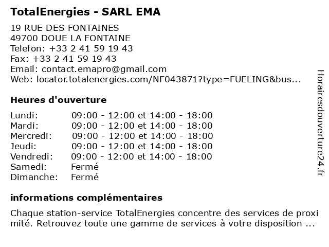 Termes de recherche pour TotalEnergies - SARL EMA:sarl, total, ema, gas station, station service, tankstelle, totalenergies |