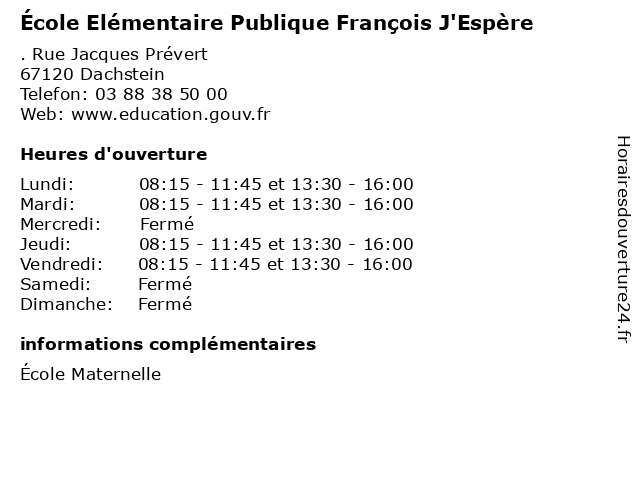 | Mardi | 08:15-11:45 et 13:30-16:00 |